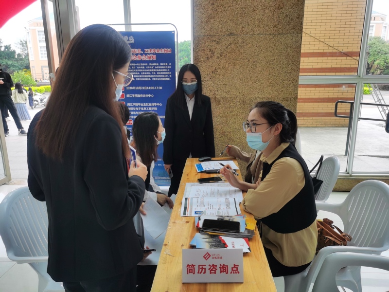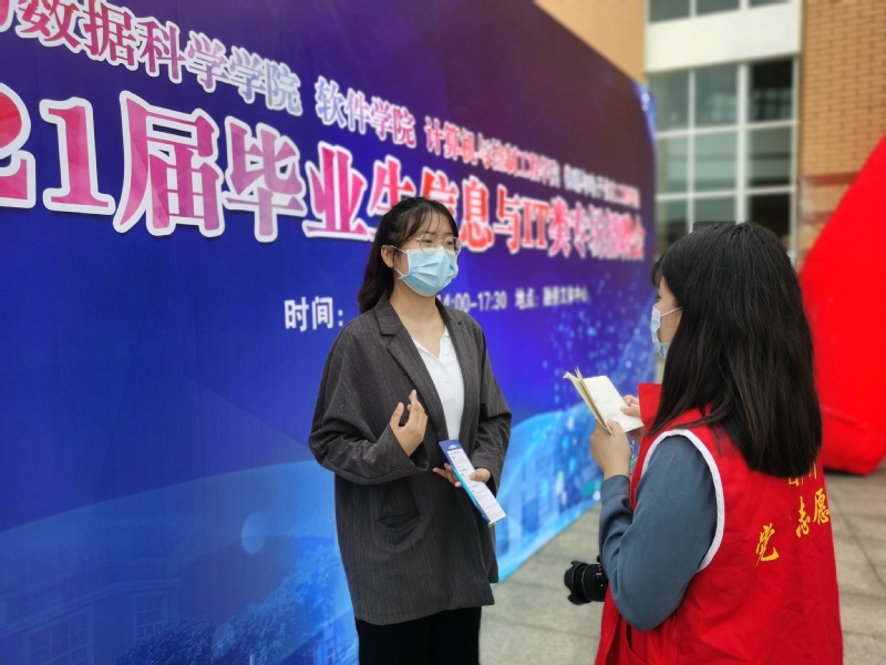 为做好疫情防控工作,控制会场人数,今年的招聘会采取各学院毕业生分批入场的方式,同时在招聘会入口也设置了体温监测和健康码检查等流程,师生和企业人员均须佩戴口罩进入会场,确保招聘会安全顺利的开展。