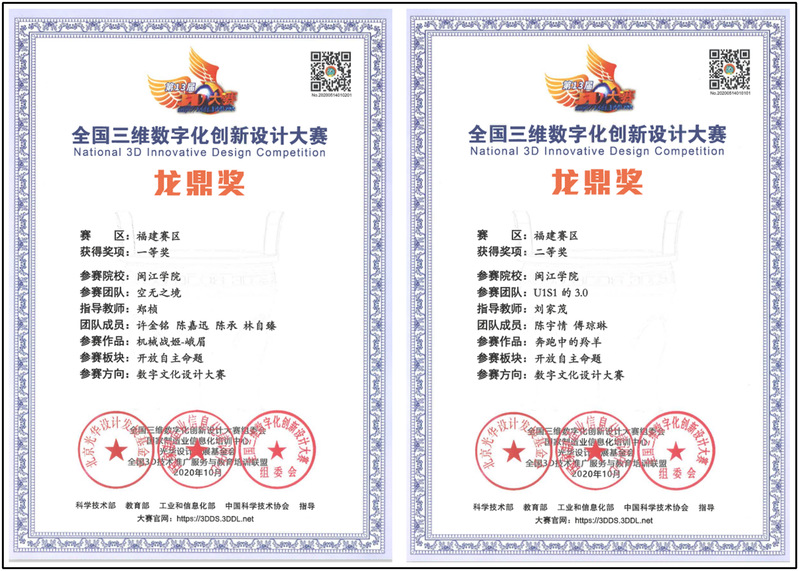 本次大赛从2020年4月份正式报名至今,前后经历了长达七个月的筹备与各级别的选拔。此次物电学院3D协会承担色色啦 的赛事组织工作,组织了113人参加了大赛,物电学院俞磊老师带领的学生队伍获得全国三维数字化创新设计大赛国赛一等奖1项,国赛三等奖1项,省赛特等奖2项。美术学院郑桢老师和刘家茂老师带领的学生队伍分别获得省赛一等奖、三等奖各1项。此次获奖人次和获奖等级均创下色色啦 在该项赛事中的新高!色色啦 获得2020全国三维数字化创新设计大赛优秀组织奖。
