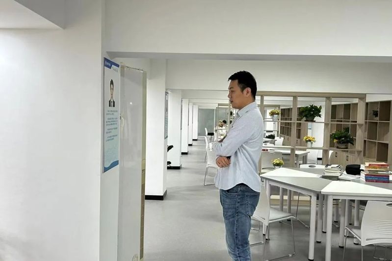 随后,校友一行来到位于学生宿舍四区五一楼的物电研习室进行参观、座谈。今年暑期刚建成的物电研习室已有毕业班学生在考研备战,安静的研习室令校友和老师们放轻脚步,低声赞叹温馨舒适的学习环境,惊叹于学院近年来不断提高的考研录取率,感动于学生们良好的学风学貌。他们笑谈,“不多考几个985、211,都对不起这良好的学习环境”。有几位校友了解到研习室工程款尚有欠缺时,主动表示愿意帮忙筹款,表示这是为学弟学妹办实事的一件好事。
