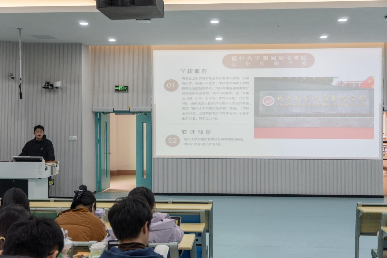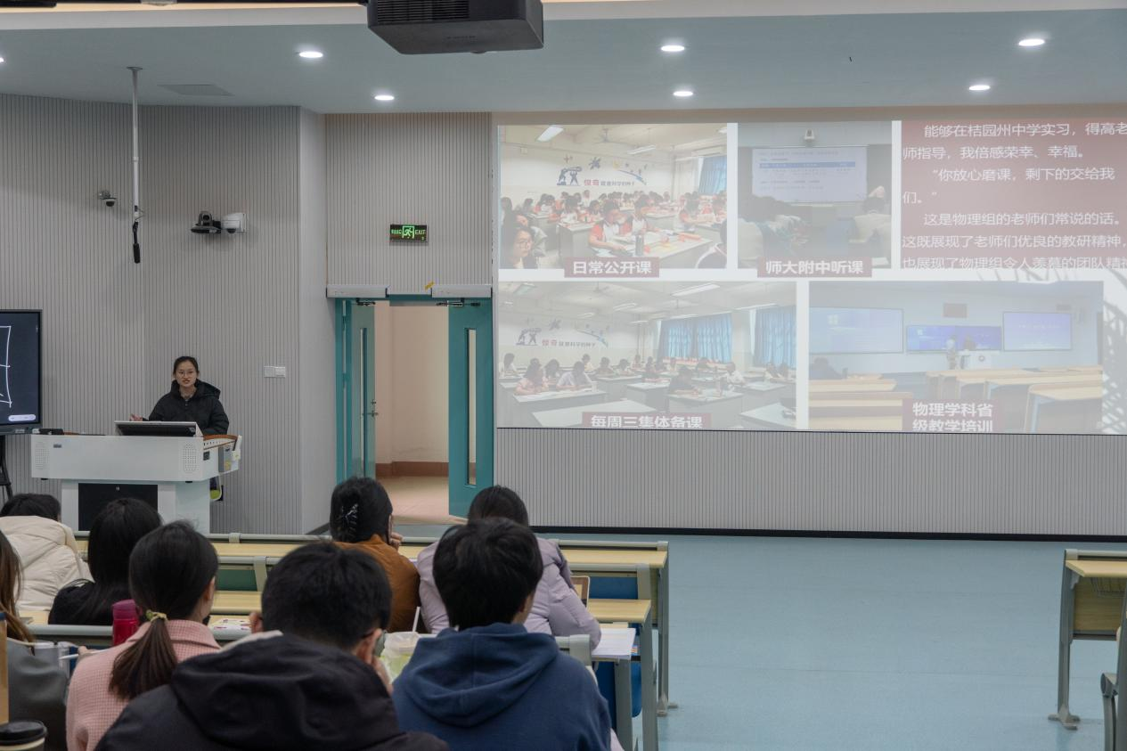 活动伊始,2020级物理学(师范)专业的苏小兰、章心贝、叶颖等九位同学,都精心准备了汇报PPT,向大家详细介绍了他们在不同学校中实习的独特体验。实习分享反映了不同教学环境、教育模式和教学对象,为同学们提供了多角度的教学观察和思考。