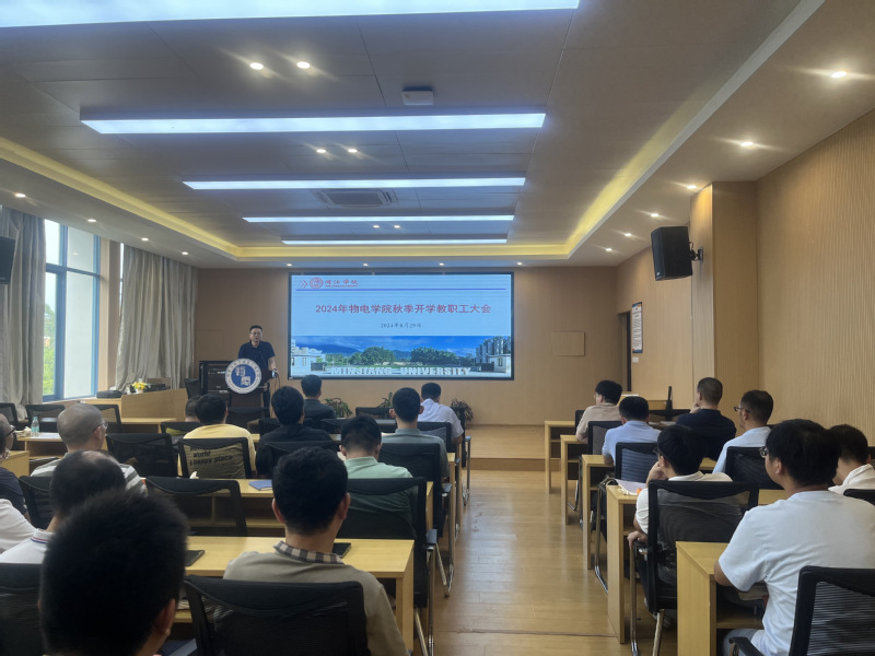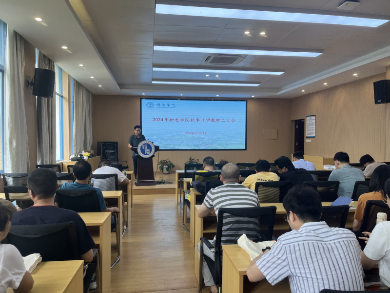 8月29日下午,物电学院召开新学期首次全体教职工大会,会议学习了党的二十届三中全会精神、省委十一届六次全会精神和市委十二届七次全会部署,结合学校综合改革,部署新学期工作。学院领导班子、全体教职工参会。会议由院长何伟主持。