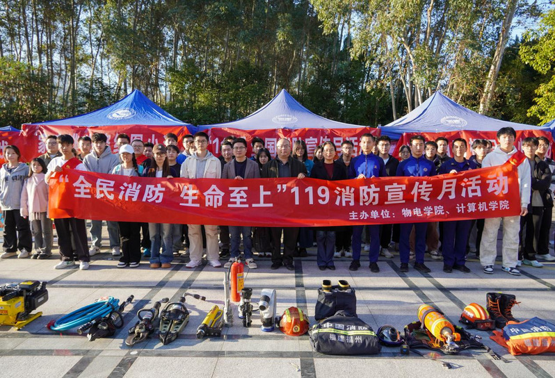 为了进一步强化师生消防安全意识,深入学习消防安全知识,提升在紧急情况下的自救能力,11月29日下午,物电学院与计算机学院联合闽侯消防救援大队上街救援站,共同举办了以“全民消防,生命至上”为主题的“119消防月”安全宣传教育活动,两个学院的实验中心老师、学生代表参加了活动。