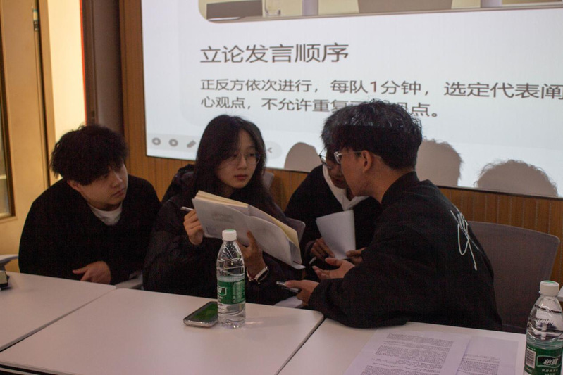 辩论过程中,双方辩手引经据典、旁征博引,逻辑清晰,思路严谨,语言表达充满张力,现场气氛紧张而热烈,观众掌声不断,笑声与思考交织。