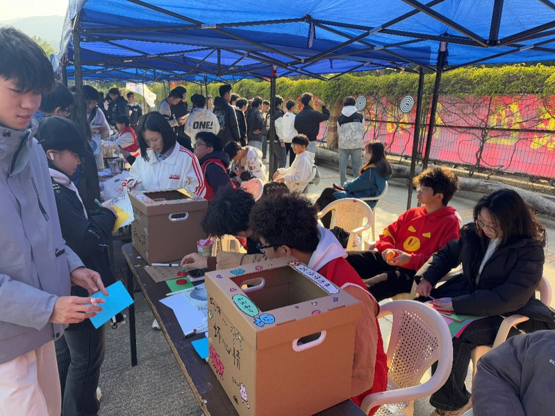 活动以“情绪箱体验”拉开帷幕。同学们将写满冬至心情或家人团聚故事的便签投入“吃掉坏心情”或“我是好心情”情绪箱,并随机抽取箱中便签,与他人分享心声。这一环节不仅为同学们提供了释放情绪的平台,还拉近了彼此的距离。
