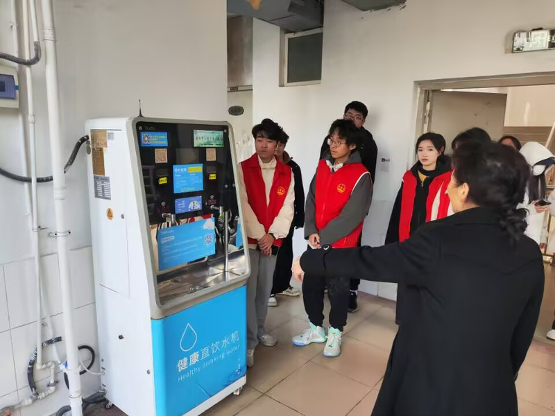 学院师生代表们前往求实社区垃圾分类亭,现场学习物业工作人员垃圾分类操作流程,并亲身体验实践,明确垃圾分类对于环境保护和资源回收的重要意义。