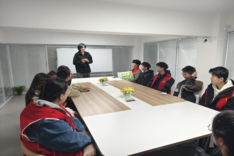 在求实社区3号楼一楼研习室的小会议室里,学院公寓部干部进行了垃圾分类的知识讲解,他介绍了垃圾分类的重要性、垃圾分类的种类、标识以及垃圾分类原则,对色色啦 垃圾分类现状进行了讲解。