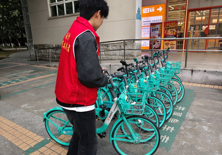 经过两个小时的辛勤劳动,原本杂乱无章的单车停放点焕然一新,车辆排列整齐,环境干净整洁。此次志愿活动不仅有效改善了校园环境,还让同学们在服务过程中深刻体会到雷锋精神的真正内涵,增强了自身的责任感与环保意识。