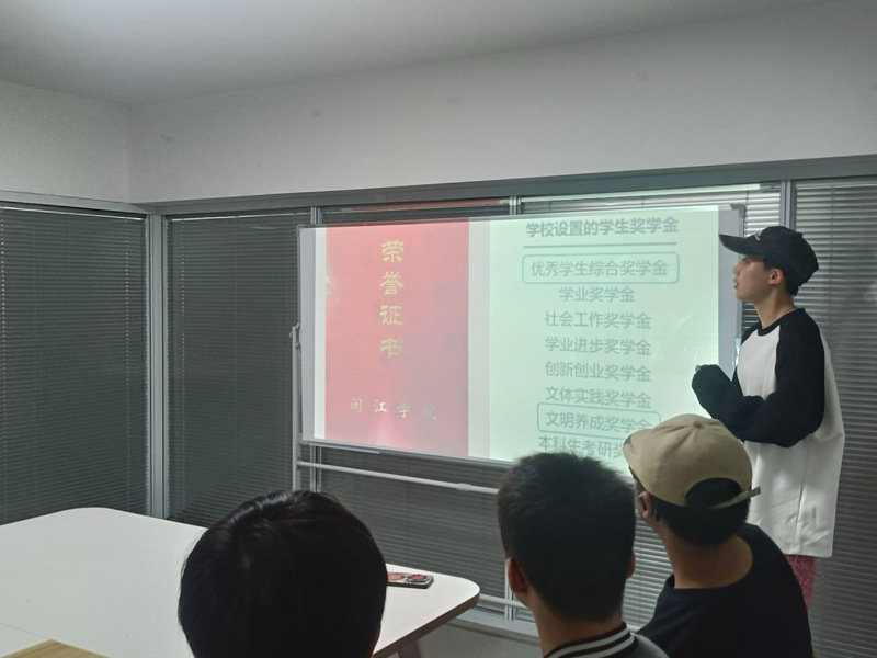 “2022-2023学年三等奖学金、2022-2023学年三好学、2023-2023学年一等奖学金、2023-2024学年文体奖学金”获得者罗颖洁同学分享了自己的学习及干部经历,介绍了自己的参加的志愿服务和实践活动,鼓励学生积极参加社会实践。