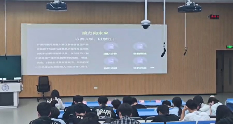 2022级电子信息工程1班林秋玲学姐分享了开源鸿蒙开发者大赛经验,强调团队协作的重要性及参赛对拓宽就业面的益处。