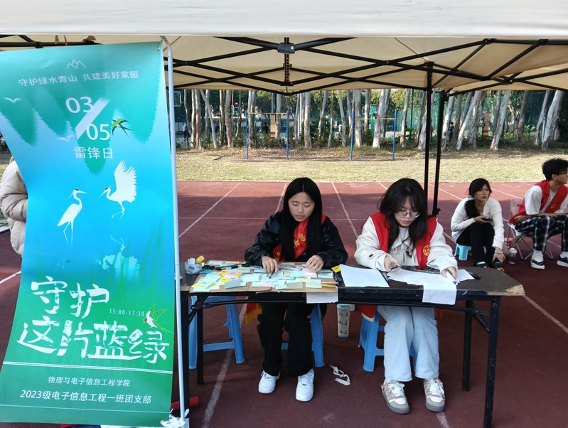 三月春风暖人心,雷锋精神永流传。雷锋月不仅是学习雷锋助人为乐、无私奉献精神的重要时刻,更是我们践行环保理念、共建美丽家园的契机。近日,物电学院志愿服务中心联合2023级电子信息工程1班团支部共同开展“守护绿水青山,共建美好家园”主题活动。活动吸引了学院近百名同学参加,通过多样化的活动,让同学们用实际行动诠释新时代的雷锋精神,为建设美丽中国贡献力量。