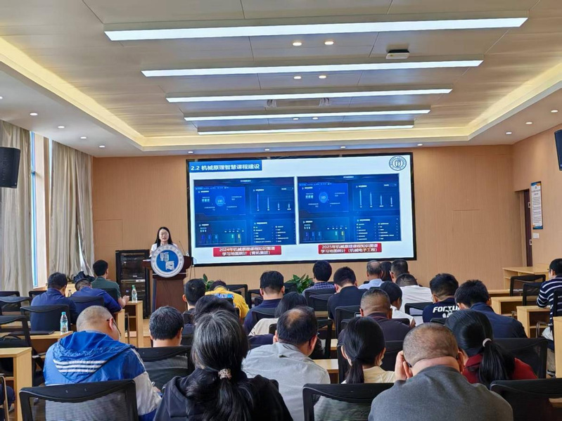 林秀芳老师首先作分享,她以“数智浪潮汹涌来袭,工科课程建设如何转型”为主题,主要围绕《机械原理》课程为例进行阐述。一方面,通过基于“知识图谱+AI”的智慧课程建设,使用AI助教等工具实现知识点自动关联与动态优化,为教学决策提供数据支持。另一方面,结合自身参加青教赛及教创赛的实践,分享了教学案例,展示了智慧课程在实际教学中的应用成效。