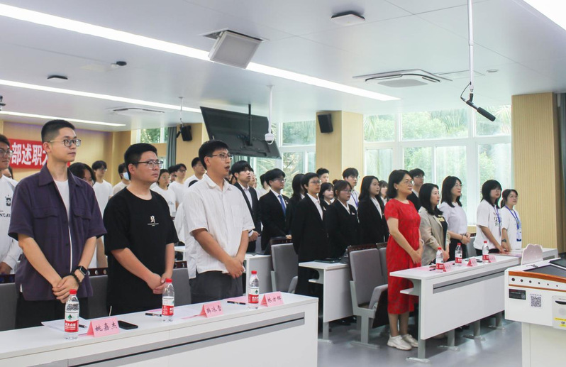 岁序常易,华章日新,为全面回顾和总结2024-2025学年各项工作,推动团学工作提质增效,6月4日,物电学院召开团学干部述职大会。学院党委副书记张林雯、团委书记林方辉、辅导员和全体团学联主要学生干部参与本次活动。