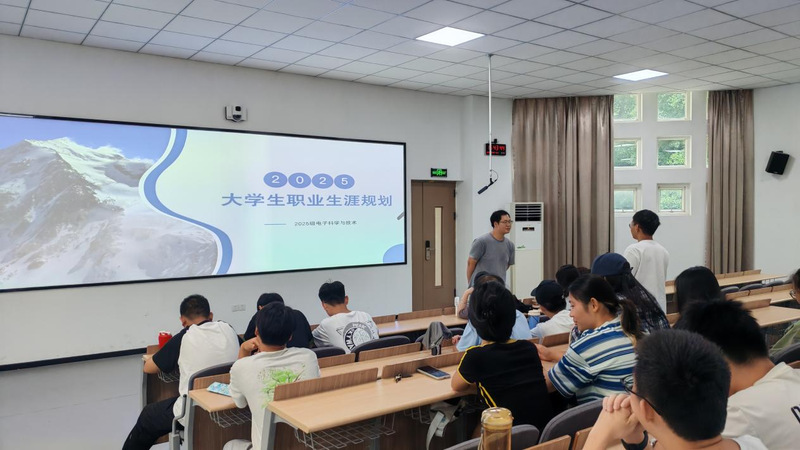 班主任们从学院学科发展历程、师资力量、课程体系设置、实验室资源等方面展开详细介绍,同时,班主任们还结合案例进行讲解,帮助新生打破“专业陌生感”,建立对所学领域的兴趣与认同。在职业规划指导环节,班主任们结合自身教学经验与行业调研数据,分析了物电学院相关专业的就业方向、岗位能力需求及升学路径(如考研方向选择、院校报考建议、出国留学规划等)。在互动环节,针对新生普遍存在的“如何平衡学习与实践”“大学期间需考取哪些专业证书”“跨专业发展可能性”等疑问,班主任们逐一耐心解答,并引导新生结合自身兴趣、性格与能力,尝试制定初步的大学四年学习计划与短期目标。