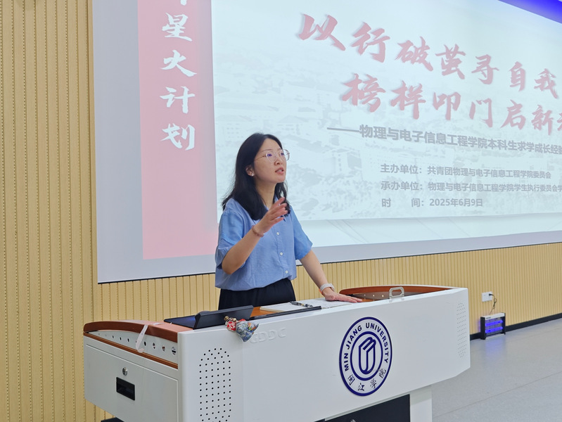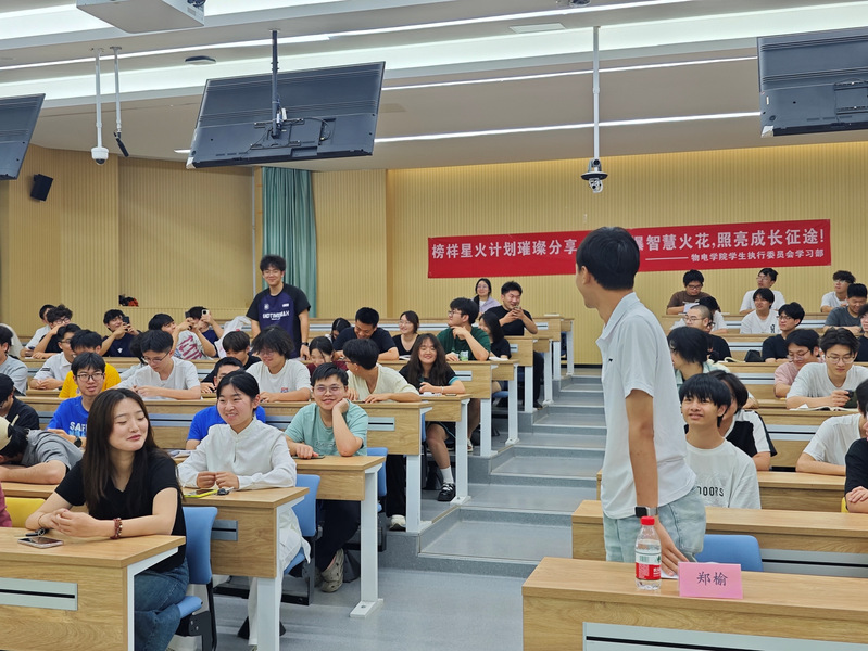 为引导学子从朋辈榜样的故事中汲取智慧、蓄力前行,6月9日,物电学院举办“榜样星火计划”第五期活动——“以行破茧寻自我,榜样叩门启新程”校友求学成长经验分享会。活动由学院学生会学习部策划承办,特邀请刚考取空军工程大学博士的2022届机械电子工程专业优秀校友郑榆回校分享其成长之路。学生会指导老师姚嘉杰、学习部指导老师白洁玉出席,共吸引了2022级至2024级近160名本科生热情参与,共启成长对话。