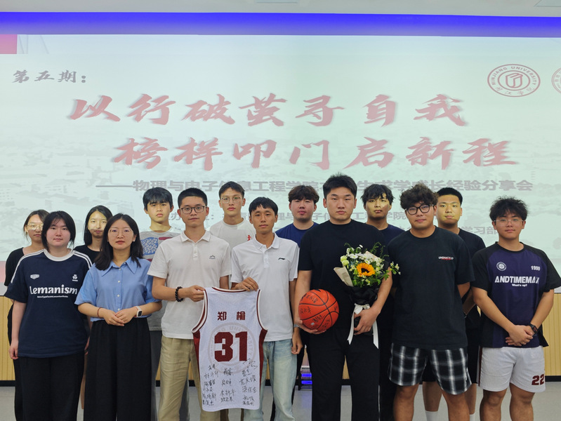 最后,学院为郑榆赠送签满篮球队成员名字的专属篮球和球衣。在两位老师与学院篮球队员的簇拥下,众人以合影定格青春印记。这份特别的礼物,不仅见证成长,更传递出学院对学生“多元化发展”的坚定支持。