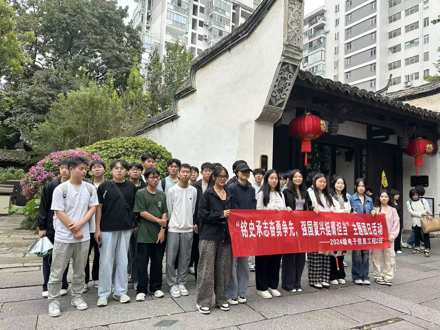 青瓦白墙间,青春身影正行动。为引导青年学生在实践中铭史承志、感悟初心,将红色基因融入血脉,11月1日,物电学院2024级电子信息工程2班团支部以“以史为鉴砺初心,青春筑梦启新程”为主题的团日活动,共有45名班级同学走进福州三坊七巷,以志愿讲解和实地研学相结合的方式,在历史街巷中追寻信仰之源,以青春之声传递红色精神。