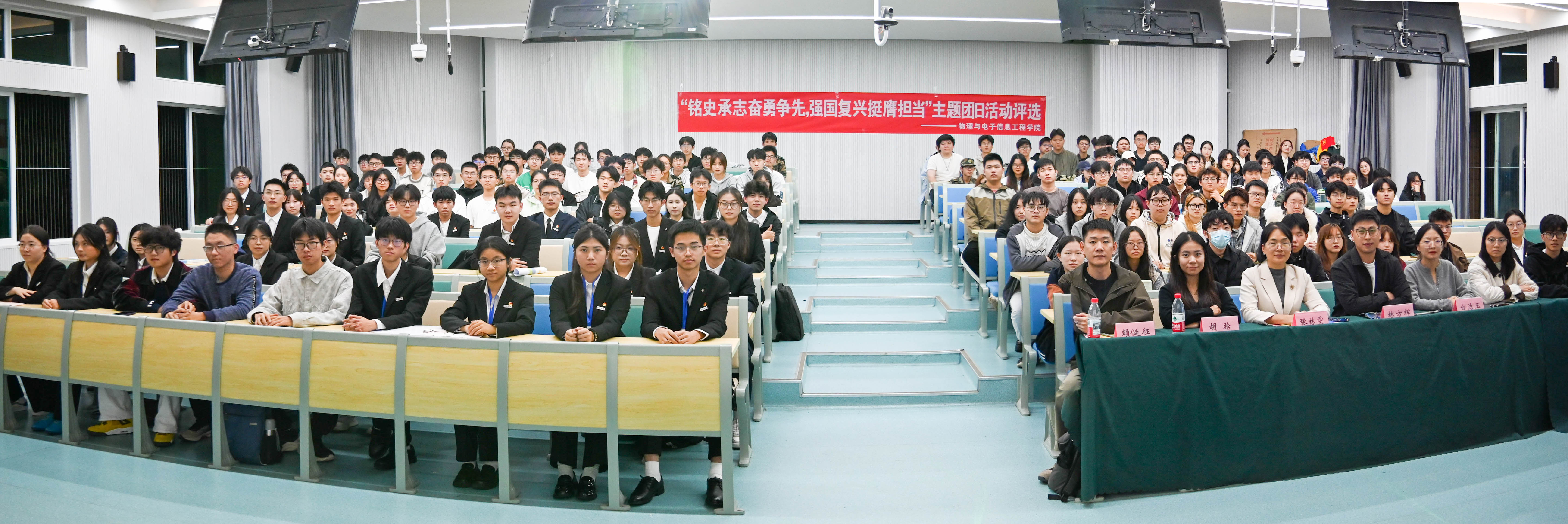 为引领广大团员青年铭记历史、缅怀先烈、珍爱和平、开创未来,11月12日晚,物电学院于教学楼1B207举办“铭史承志奋勇争先,强国复兴挺膺担当”主题团日活动评比。学院党委副书记张林雯、团委书记林方辉、辅导员及学生代表参加了活动。