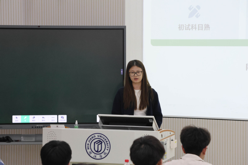 活动现场,研究生邱佳弘结合自身“外校冲刺—母校录取”的备考经历,解析择校取舍与风险控制,强调理性评估与善用校内资源。马杰围绕“创新实践赋能学业”,分享了本科阶段参与学科竞赛与论文发表的经历,并梳理了备考流程、资料筛选与信息搜集方法,提醒同学们“清晰规划、精准发力”,现场互动高效务实。