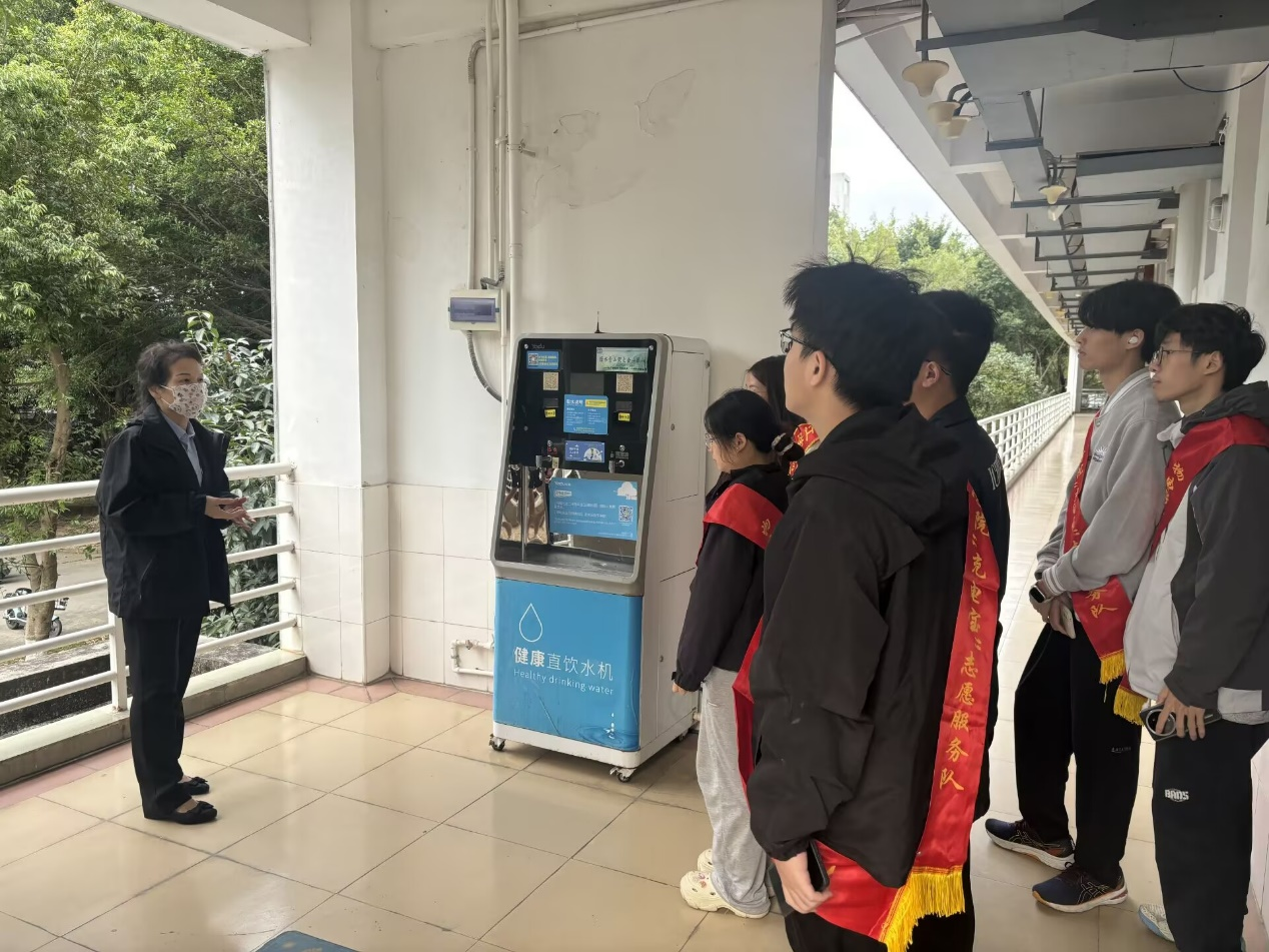 随后,学生们前往求实社区二号楼垃圾分类亭,实地观摩垃圾分类的分拣操作流程。在垃圾分类负责人的引导下,学生们亲自上阵,体验垃圾分拣环节,并积极指导前来投放垃圾的同学正确分类。在实践中,学生们不仅巩固了所学知识,更体会到了垃圾分类工作的细致与重要。