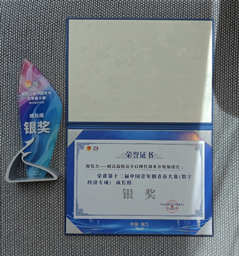 11月27日,为期4天的第十二届中国青年创青春大赛(数字经济专项)在海南省海口市圆满落幕。物电学院参赛项目“鲍发力——耐高温鲍苗开启现代渔业养殖加速度”凭借扎实创新实力与落地潜力,成功斩获国家级银奖,取得学院在该赛事上的历史性突破。