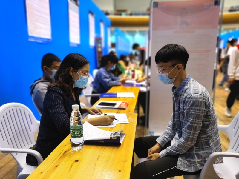 在走访中我们了解到,面对今年疫情影响下的就业压力,有些同学有些同学略显焦虑,信心不足。但是不少同学心态轻松,并表示自己做足了功课,明确了将来要工作的方向,对找到工作充满信心。来自物电学院2017级电子信息科学与技术专业的陈一帆同学表示,自身比较期待与专业相关的岗位,这是自己的兴趣点也是特长点,希望通过今天的招聘会进一步了解相关岗位的招聘要求,最终找到较理想的岗位。