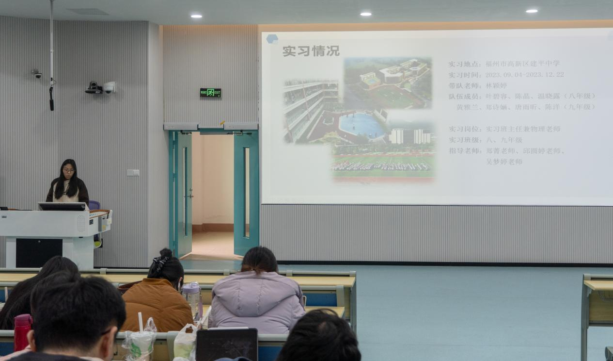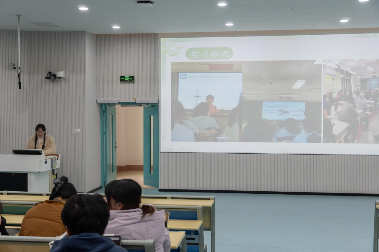 活动伊始,2020级物理学(师范)专业的苏小兰、章心贝、叶颖等九位同学,都精心准备了汇报PPT,向大家详细介绍了他们在不同学校中实习的独特体验。实习分享反映了不同教学环境、教育模式和教学对象,为同学们提供了多角度的教学观察和思考。