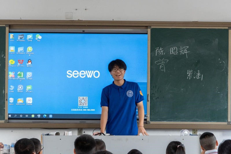开营仪式结束后,实践队员带领同学们返回教室,组织简短互动,以自我介绍的形式促进师生间了解。