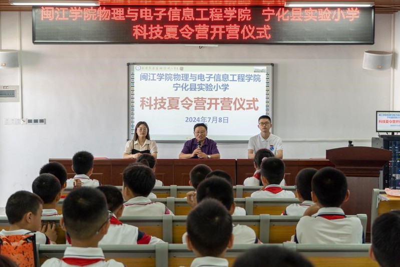 活动开营仪式于7月8日上午,分别在宁化滨江实验中学、宁化县实验小学举行。物电学院带队老师韩冰雪、姚嘉杰,宁化滨江实验中学副校长李秋金、团委书记巫秀秀,宁化县实验小学校长伍和平、副校长伊敏以及“暖风服务学习专项实践队”队员、两校参营70余名学生出席开营仪式。
