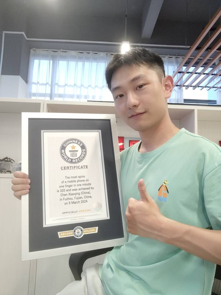 “收到证书,得知获得纪录那一刻,确实很激动!但是,我很快就平静下来了,这只是生活的一小部分。”陈小清说,自己的亲友们得知他“转”出一项吉尼斯世界纪录,都很惊讶,父母更是又惊又喜。