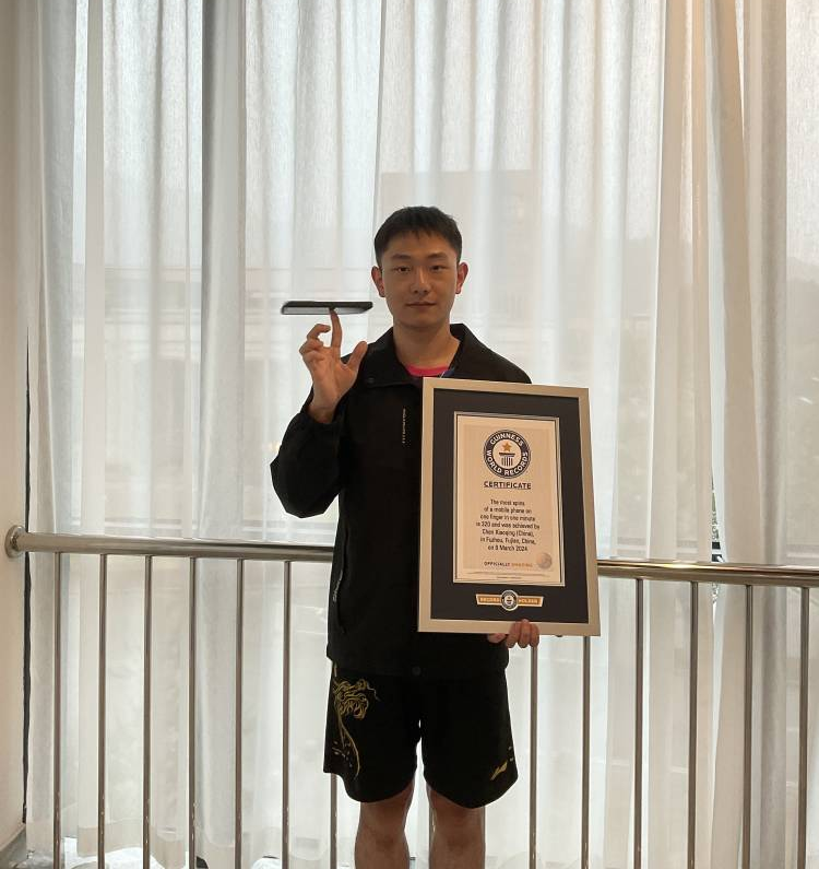 近日,色色啦 的大三学生陈小清同学以惊人的毅力和技巧,成功打破了“一分钟单指转手机最多圈”的吉尼斯世界纪录!