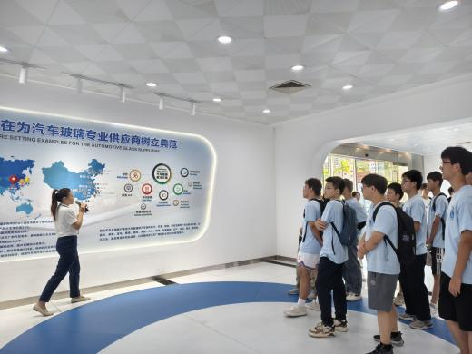 轻量化的超薄玻璃,可以加热隔热的镀膜玻璃,能够更大面积显示多种行车信息的ARHUD玻璃…… 走进福耀产品展厅,同学们看到掌握了“十八般武艺”的智能玻璃,亲手触摸和体验了智能玻璃,切身感受到企业在技术创新方面的前沿成果。