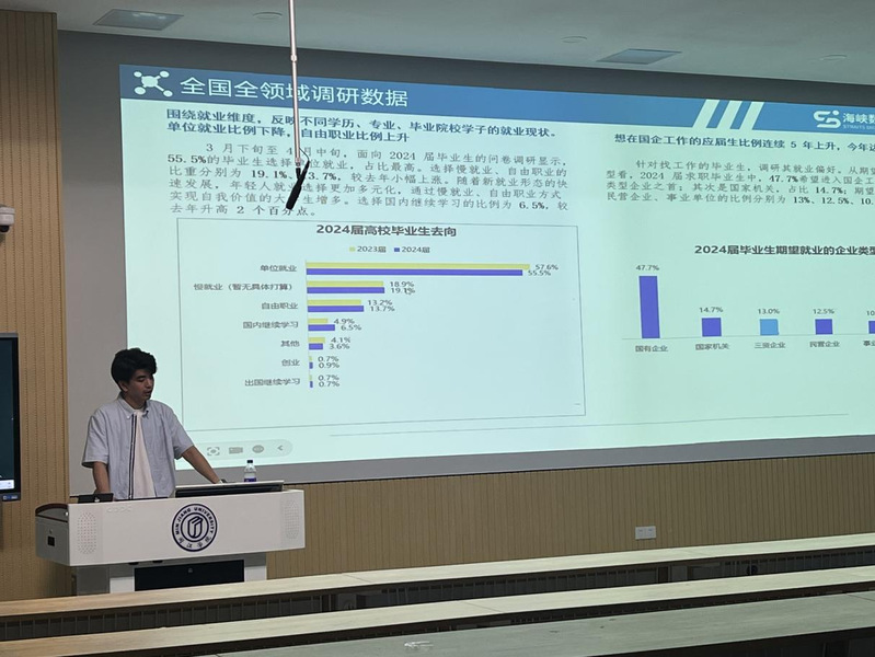 林瑞祥经理首先强调了在当前复杂多变的就业形势下,深入了解就业政策的重要性。随后,他详细解读了最新的就业政策,涵盖了税收优惠、创业扶持、职业培训等多个方面。他通过生动的案例解读复杂的政策条款,让在场的毕业生对就业市场有了更加清晰的认识。同时,他还结合未来就业市场的趋势,为毕业生们提供了宝贵的职业规划建议,帮助他们更好地定位自己的职业发展方向。