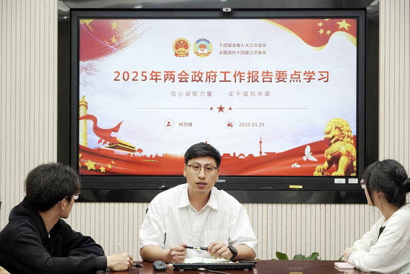 林方辉结合习近平总书记在全国两会期间的重要讲话精神和政府工作报告,以“人工智能赋能高质量发展”热点话题为切入,运用“政策解读+行业案例”方式,强化理论学习的生动性和实效性,引导团学骨干认识科技创新的战略意义。此外,他着重强调,作为团委干部,要全力加强团支部建设,深入开展广大团员的思想教育工作,不断创新工作思路与方法,积极引领青年团员切实将两会精神转化为实际行动。