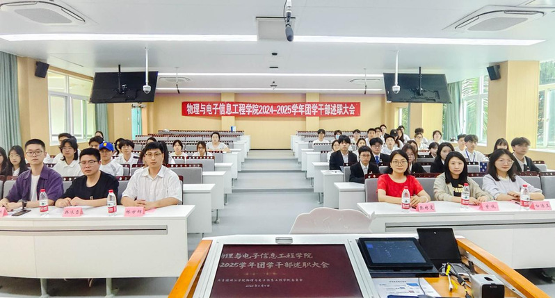 岁序常易,华章日新,为全面回顾和总结2024-2025学年各项工作,推动团学工作提质增效,6月4日,物电学院召开团学干部述职大会。学院党委副书记张林雯、团委书记林方辉、辅导员和全体团学联主要学生干部参与本次活动。
