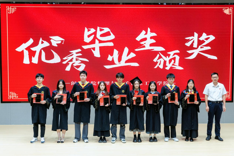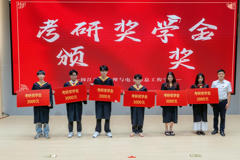物电学院2025届毕业生考研再创佳绩,共有56名毕业生荣获考研奖学金,学院党委书记洪晓林为考研奖学金获奖代表颁奖,勉励受表彰的同学再接再厉,严谨求学,刻苦钻研,奋发成才。