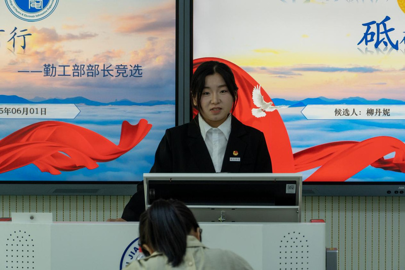 在竞选环节,同学们结合自身在团学工作中的实践经历,围绕工作经验、团队协作、组织管理等核心能力,详细阐述对团学工作的深刻理解与未来规划。从策划学科竞赛的执行细节到优化学生服务的创新构想,参与竞选的同学以具体案例展现对团学工作的热忱与责任感,彰显出物电青年的担当意识。