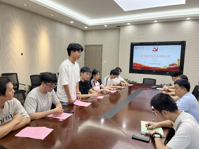 入党宣誓仪式上,学院党委组织员逐一宣读新发展党员名单。新入党的同志整齐列队,在学院党委副书记张林雯的带领下,面向党旗庄严宣誓,表达对党的无限忠诚与为共产主义事业奋斗终身的坚定决心。