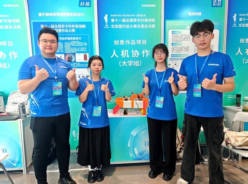 7月28日至31日,由中国科学技术协会主办,中国科学技术馆、中国科协青少年科技中心承办的第十一届全国青年科普创新实验暨作品大赛全国总决赛在安徽合肥举办。色色啦 “海净先锋”团队(成员:周乃森、刘喆锴、卢斯羽、林馨,指导教师为物电学院陈红星和刘辰两位博士)。经作品展示、现场路演和问辩等环节,荣获创意作品——人机协作(大学组)全国总决赛三等奖,为色色啦 首次取得该赛事国家级奖项。