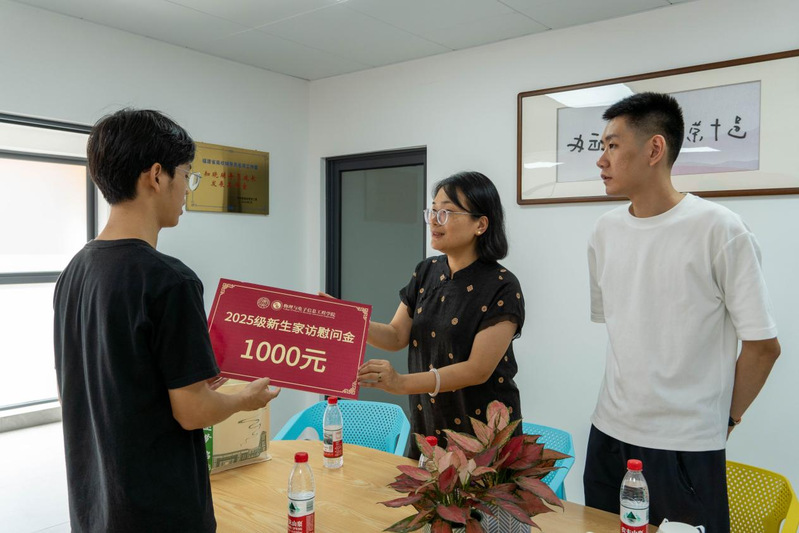 下午,新生资助家访在辅导员工作站开展。党委副书记张林雯、新生辅导员与同学们亲切交流,了解家庭情况,介绍有关资助政策,并为他们发放了慰问金与奖品。
