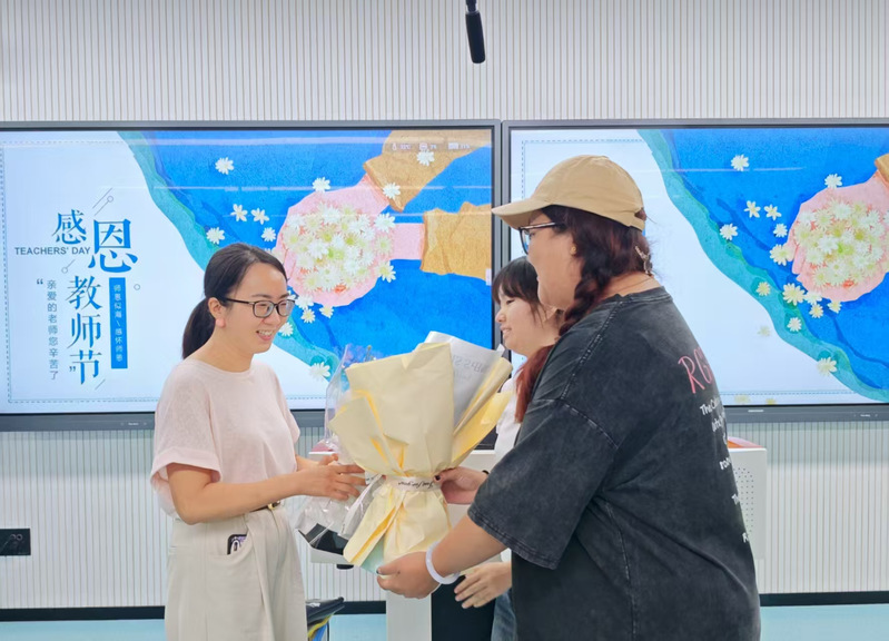 教室里,学生们提前到班级,手捧鲜花,静静等待着老师的到来。“老师,节日快乐!”当熟悉的身影出现在教室,同学们齐声送上节日的祝福,将精心准备的鲜花递到老师手中。