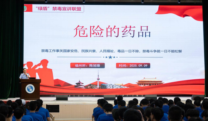 福州司法强戒所陈旭臻警官则聚焦新型毒品隐蔽性强、危害性大的特点,深入讲解药物滥用的身心危害,警示新生远离来源不明的药品食品,培养健康的生活方式。