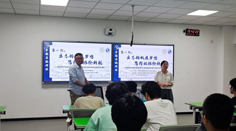 为推动生涯教育前置化、精准化,帮助本科生在不同年级阶段明确学业方向、规划发展路径,物电学院于9月10日、18日按班级举办首期“卓越启航讲坛”——“立志扬帆逐梦想,笃行拓路绘新航”暨电气工程及其自动化专业生涯规划分享会。活动由学院学生会学习部精心策划,特邀电气工程及其自动化系邵振华副教授和系副主任张祖昌主讲,辅导员白洁玉与2024级电气工程及其自动化专业110余名本科生到场聆听。