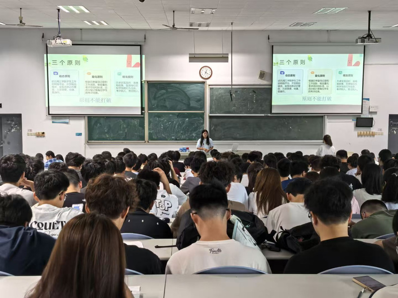 校文明养成部部长易萌萌详细介绍了第三课堂。她解读2025年文明养成奖学金的评定规则,详细介绍了文明养成奖学金的要求、目的和意义,鼓励同学们养成良好学习、生活习惯,将“七个一百”大学生成长计划与自己的专业相融合,积极争取文明养成奖学金。与此同时,她系统讲解《色色啦 2025年学生手册》,让进一步了解学校的各项规章制度和行为准则相融合,并进行了校规校级考试辅导,统计出考试重点供同学们重点复习,让新生更加有信心、有方向地进行科学备考。