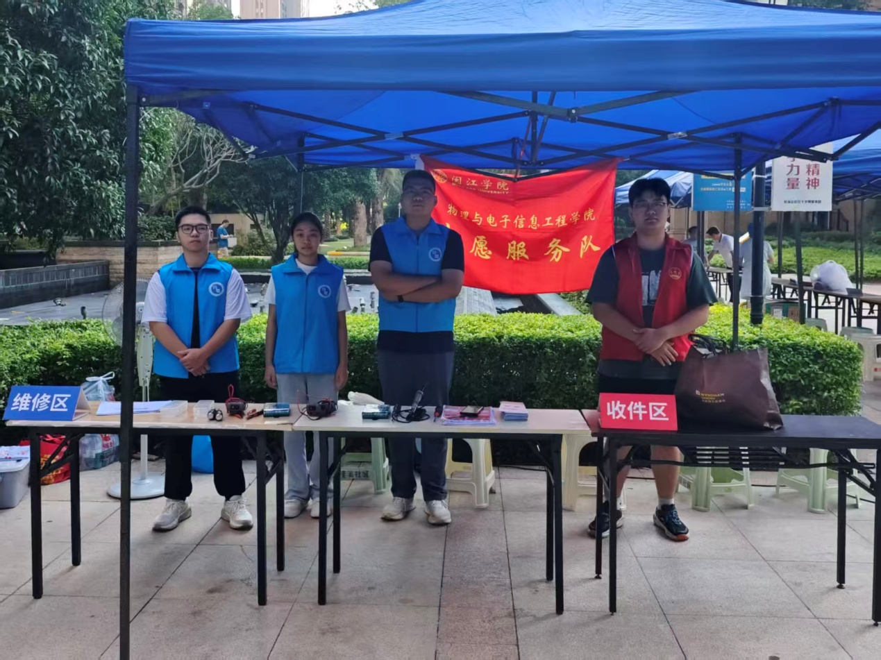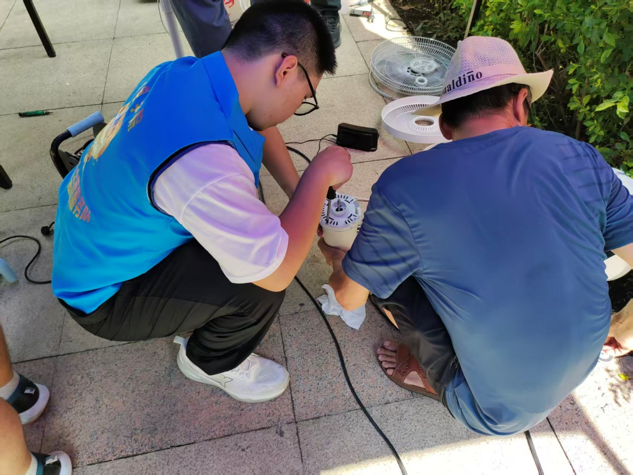 上午八点,志愿者们准时抵达现场,社区居民陆续送来故障家电,志愿者们热情接待、逐一登记,认真了解电器问题。维修过程中,队员们充分发挥专业优势,对各类家电进行全面检测,针对线路烧毁焊接、电风扇叶片卡滞、热水壶无法加热等常见故障,精准排查、高效修复,以扎实的技术切实解决居民生活中的实际问题,赢得广泛好评。