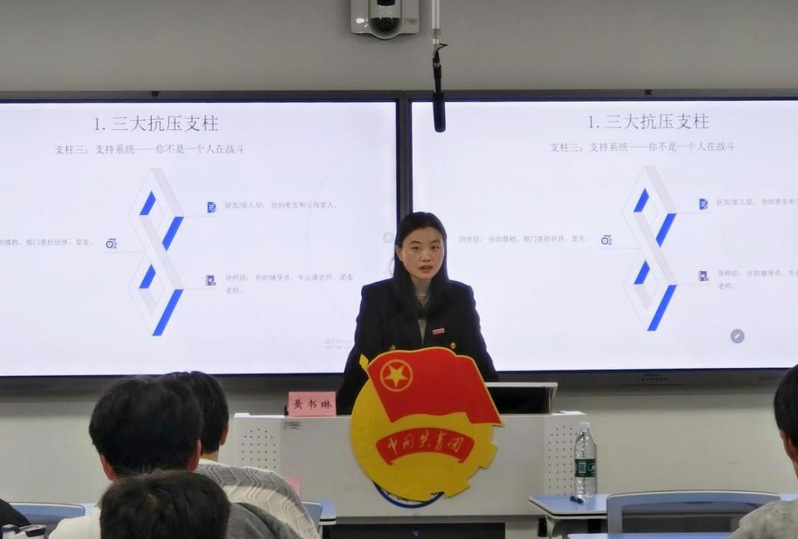 随后,黄书琳老师围绕学生干部常见的压力问题,分享了“三大抗压支柱”体系,帮助大家从“被动承受压力”转向“主动成长赋能”。